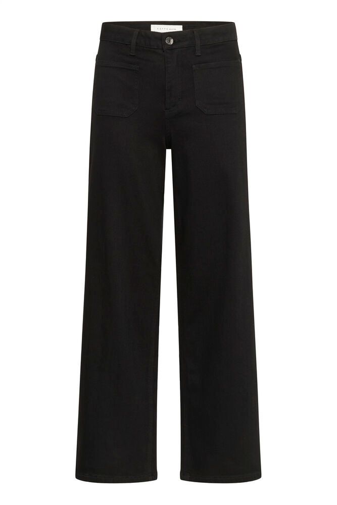 Fabulous denim by Kaffe...these wide-leg jeans feature a modern high waist fit, a nice stretch fit, front patch pockets, and full length. Designed for comfort and effortless style, they offer versatile wear for various occasions and easy outfit pairing.