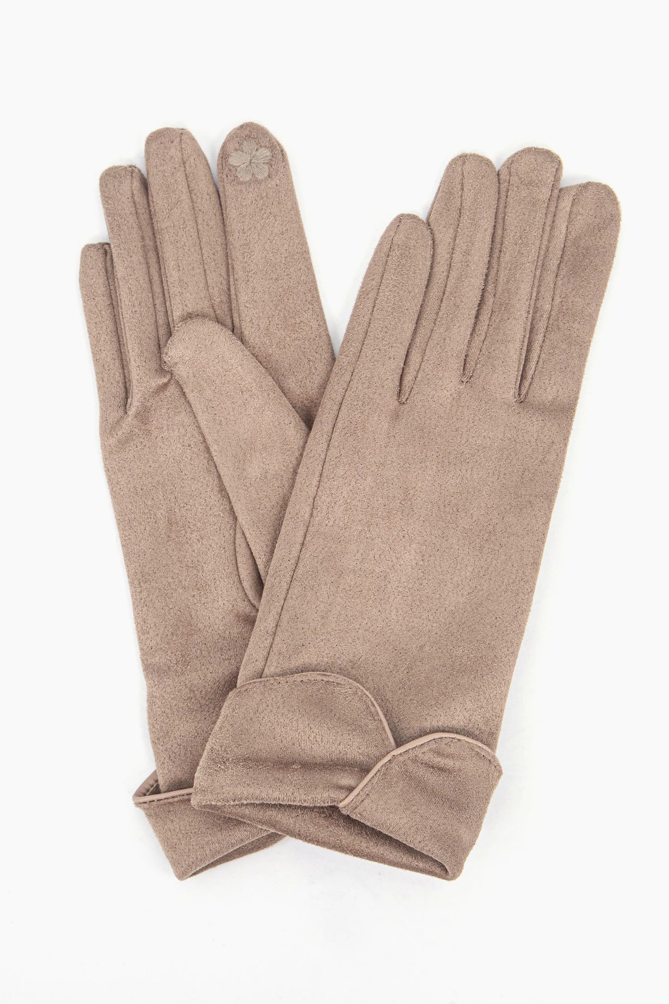 We love these neutral camel coloured winter gloves, they have a vintage feel with their fold over cuff and scalloped edge detail. They are crafted from a soft velvet textured fabric. Touch screen compatible, these gloves can be worn while using any mobile device.