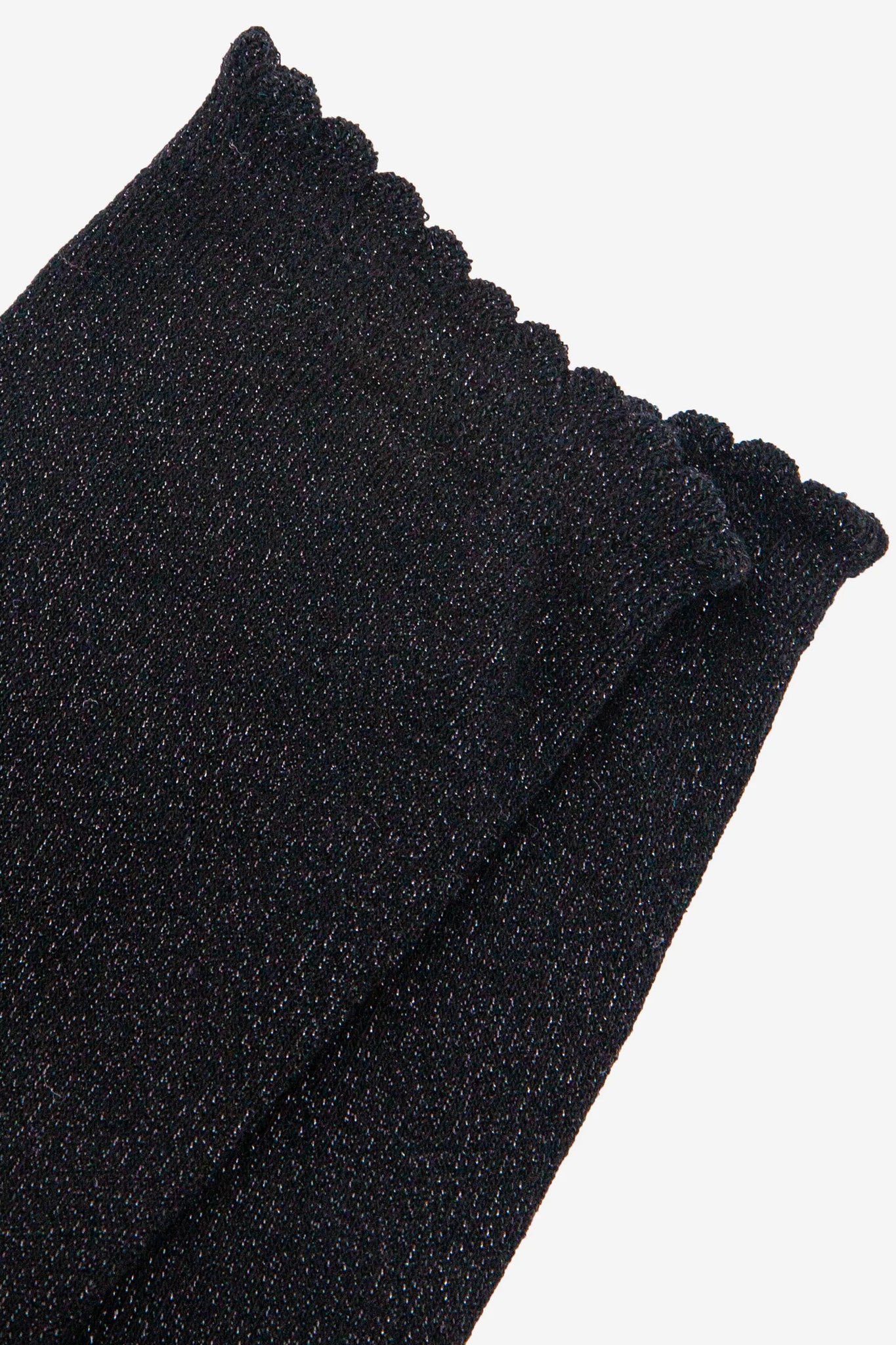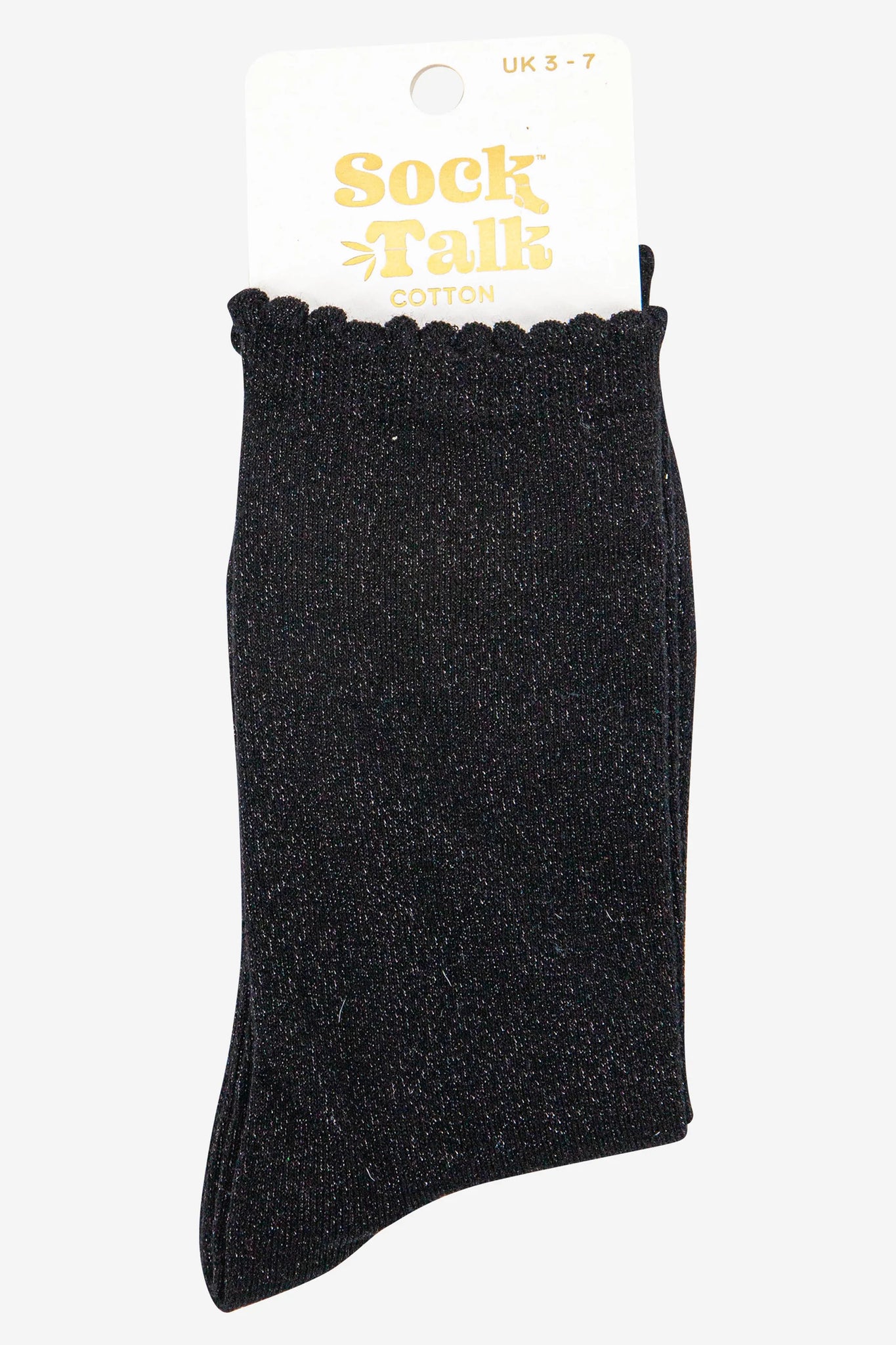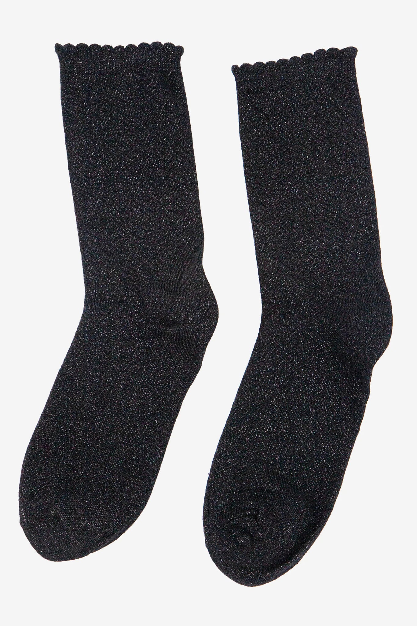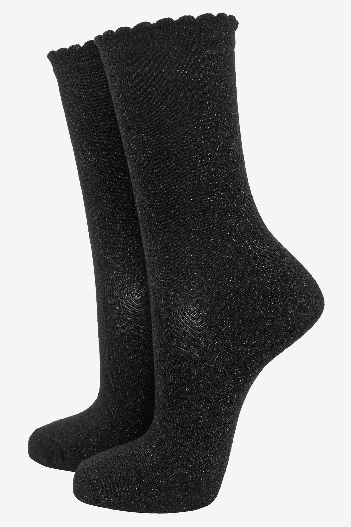 These glitter socks are crafted from soft blended cotton. Classic black socks with a fine silver sparkle. Naturally breathable with a luxuriously comfortable scalloped cuff.