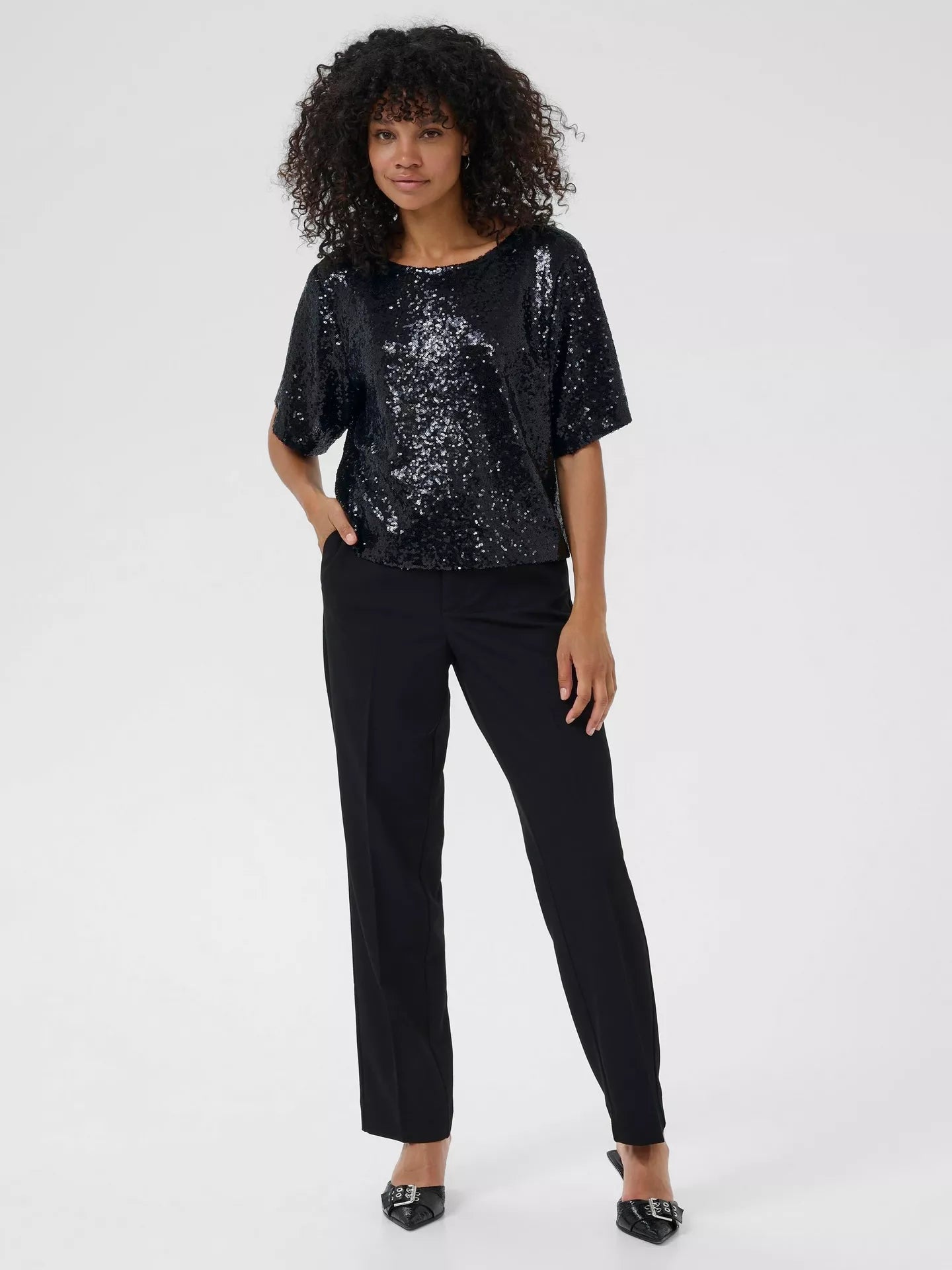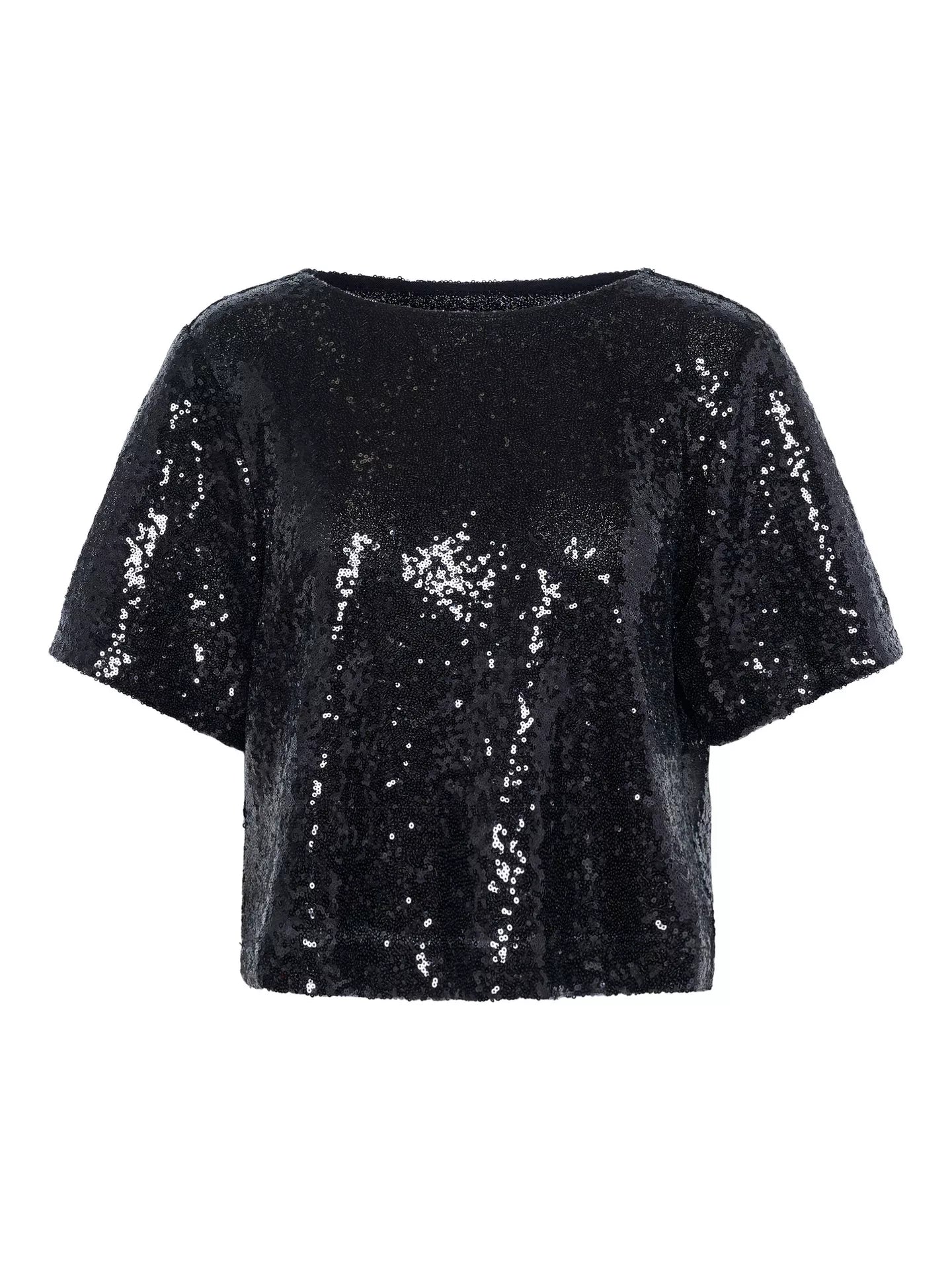 Simply a lovely black sequin top by Kaffe, no frills, this simple style speaks for itself!  Also available in green sequin.